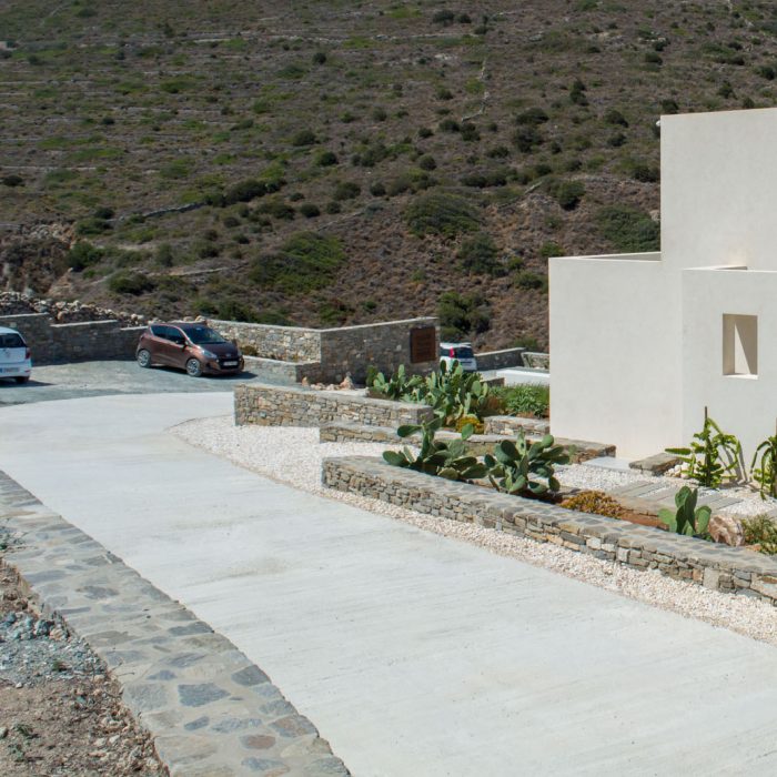 The hotel provides private parking, ensuring a convenient stay for guests with vehicles. The expansive property allows for leisurely walks through the stunning Cycladic landscape, surrounded by olive trees and natural beauty. Additionally, a dining area by the pool offers a perfect spot for enjoying breakfast or meals in a serene setting.